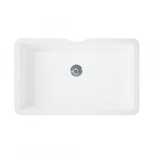 Rectangular basin with a narrow corner radius. When combined with our joining technology, it integrates seamlessly into your benchtop, to ensure best practise hygiene and cleanliness, you will never have any mould build up at the junction where the basin meets the benchtop.
